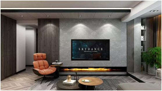 巴哈馬石紋的背景墻配以埃拉橡木流動的紋理,