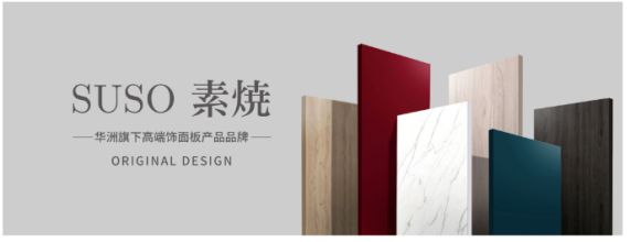 除了高品質的環保基材,擁有豐富的原創花色的飾面板同樣也是高端輸出的產品之一。華洲旗下的高端飾面板產品品牌 SUSO素焼,以“為原創設計而生”為理念,以原創的國際頂尖花色、高端的飾面板材,為定制家居、商業空間、裝飾工程提供更多優選。