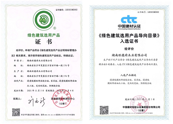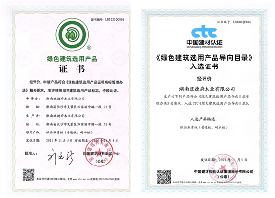 近日,萬象品牌浸漬膠膜紙飾面膠合板、家具板、浸漬膠膜紙飾面細木工板、定向刨花板、阻燃膠合板、紙面石膏板(普通板、耐水板)產品,經過嚴格審查、抽樣、檢驗和監督管理,獲得綠色建筑選用產品證書,并成功入選中國建材檢驗認證集團主編的《綠色建筑選用產品導向目錄》。
