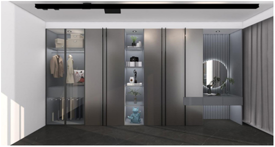 萬象PET柜門板,板面兼具極高光澤感的視覺效果和嬰兒膚感般的觸覺體驗。可分為高光和啞光兩種,應用范圍廣泛,可以滿足室內不同區域家居產品設計對于板材的要求,輕松駕馭不同的裝修風格。