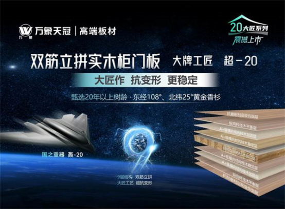 除了在產品品質、顏值與環保力上嚴苛把關,萬象天冠高端衣柜定制還就產品的市場競爭力持續加碼。值此25周年來臨之際,“萬象天冠20大匠系列-雙筋立拼實木柜門板”和“萬象天冠20大匠系列-雙筋實木生態板”兩個系列產品上市,聚焦家居健康、定制美學,人居內涵、先進工藝、實用價值等五大維度,彰顯品牌市場價值,引領行業發展風尚。