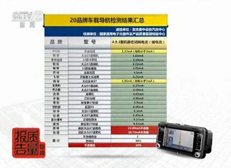 在央視調查的20款后裝導航儀產(chǎn)品中,有兩款產(chǎn)品的暗電流超過了10mA,其中一款產(chǎn)品的暗電流甚至達到了28.73mA。另外,在這些產(chǎn)品中只有2款產(chǎn)品標注了待機電流/關機電流。