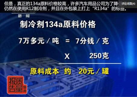 然而,由于監(jiān)管不嚴,許多汽車用品公司為了降低成本,仍然在使用R12制冷劑,并且在外包裝上打上“R134a”的標簽。由于車輛制冷系統(tǒng)專為R134a設計,所以在使用R12制冷劑后就必然會導致其“水土不服”。