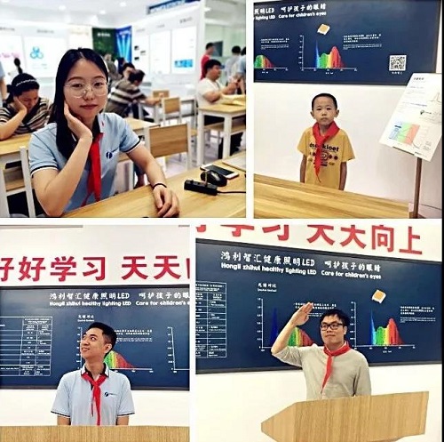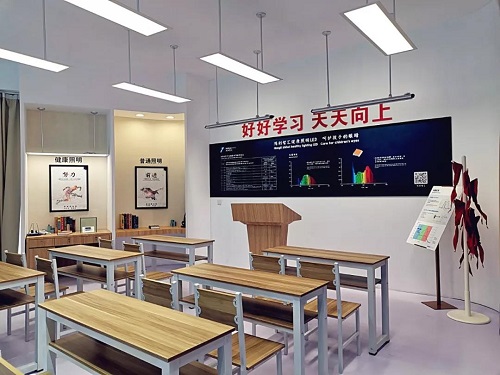 使用健康的LED照明產品保護兒童的眼睛,創造健康舒適的教室照明環境。在光亞展覽現場,鴻利智匯為每個人創造了1:1的教室照明場景。燈具采用鴻利護眼系列LED光源。該系列光源通過光譜調制實現Ra≥90,使光源的顏色還原性更接近自然光,降低400-480納米藍光危險區域的光譜含量,協助燈具設計實現RG0無危險照明。
