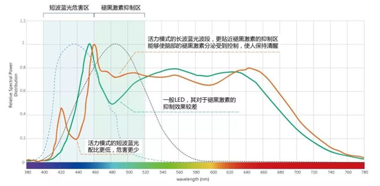 據了解,藍光以455nm做為一個分界,介于420-455nm為短波藍光,能量較強,容易使眼睛產生疲勞,長期在這樣的光環境下勢必會給人眼帶來傷害;而大于455nm為長波藍光,因能量較低對眼睛的傷害也大幅度降低,介于450-480nm的長波藍光,還能夠使人保持更好的專注力。