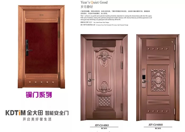 金大田智能安全門,由金大田精選各種高檔不銹鋼、銅質(zhì)、鋁質(zhì)、木質(zhì)等多種新型生態(tài)環(huán)保原材; 創(chuàng)意設(shè)計古典奢華、典雅風(fēng)尚、經(jīng)典歐式、經(jīng)典美式、現(xiàn)代歐式、現(xiàn)代美式、時尚新貴、都市魅力等上千種原創(chuàng)風(fēng)格,雕花效果精美逼真,產(chǎn)品花樣造型豐富。在產(chǎn)品的風(fēng)水尺、結(jié)構(gòu)性、安全性、智能性方面,通過改進(jìn)技術(shù),綜合運用數(shù)據(jù)通信、網(wǎng)絡(luò)設(shè)備等技術(shù),成功研發(fā)出超越傳統(tǒng)智能門的智能安全門,將自主研發(fā)的智能物聯(lián)模塊和門完美融合,實現(xiàn)真正意義上門的智能化,全面開啟智能家居生活。