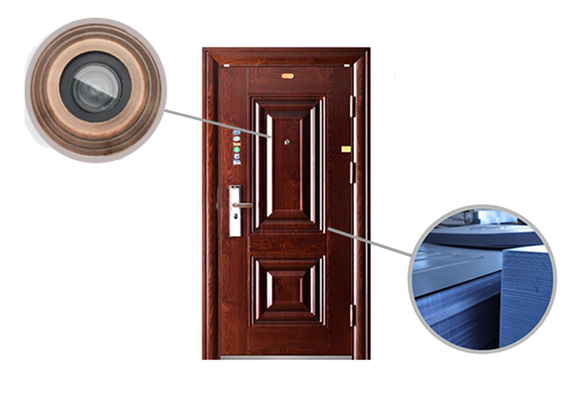 其中,鋼材是市場上最廣泛使用的材料。它具有材料堅硬、價格低廉的優點。知名品牌金大防盜門選用國家標準冷軋鋼板,門框厚度符合國家標準2.0毫米,門扇厚度達到1.0毫米。同時,產品內部填充高密度環保蜂窩紙,兼顧環保,具有重量輕、隔音降噪、保溫效果好等特點。蜂窩結構設計利用機械結構分散應力的原理,可以擴大應力區域,增強抗沖擊力。此外,門體的下齒輪由201不銹鋼制成,經久耐用。當門體下部有污漬時,可以立即清洗門體,清洗更加方便、放心。