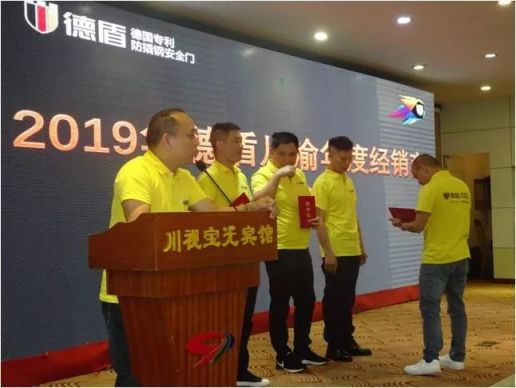 2019年9月7日,德國德盾中華川渝地域本年度經(jīng)銷商大會(huì)在四川成都新都區(qū)川視賓館舉辦,至2017年年末德國德盾步入川渝,以迅速的勢態(tài)發(fā)展壯大,迄今川渝地域已有著近一百多個(gè)德盾防盜門品牌實(shí)體店。