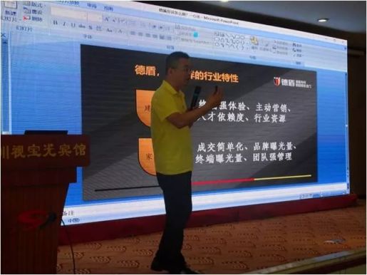 德國德盾中華川渝大區(qū)總經(jīng)理為本次經(jīng)銷商大會(huì)進(jìn)行了開場詞,對當(dāng)前的建材行業(yè)市場進(jìn)行了由淺入深的分析和判定,并且為四川的伙伴加油鼓勁。