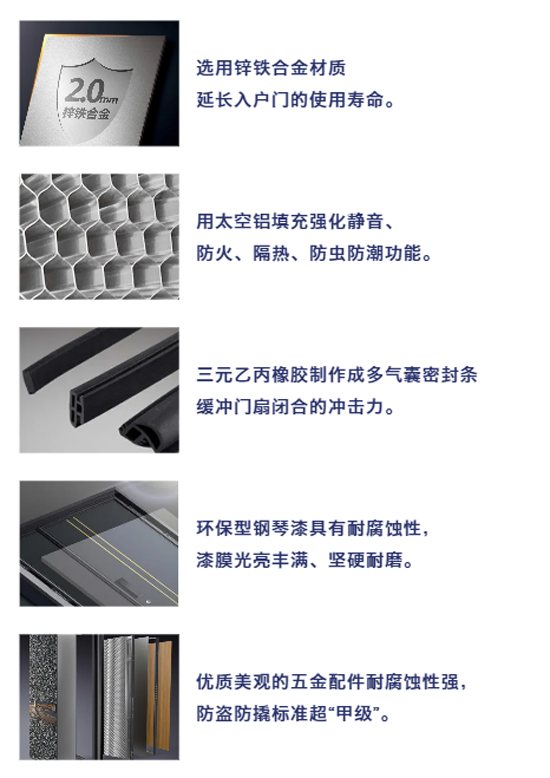 一樘品質過硬的好門,一流的原材料是其必備條件,裝飾膜、門鎖、五金、油漆、密封條等看似不起眼的小物件,也賦予一樘門極其豐富的功能性,對使用體驗起著至關重要的作用。