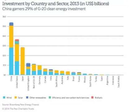 據新華社消息,中國在清潔能源的投資占G20投資總數的29%,遠遠超過美國和日本在新能源方面的投資。并稱中國在控制污染和遏制環境破壞方面的努力值得世界各國政府借鑒。