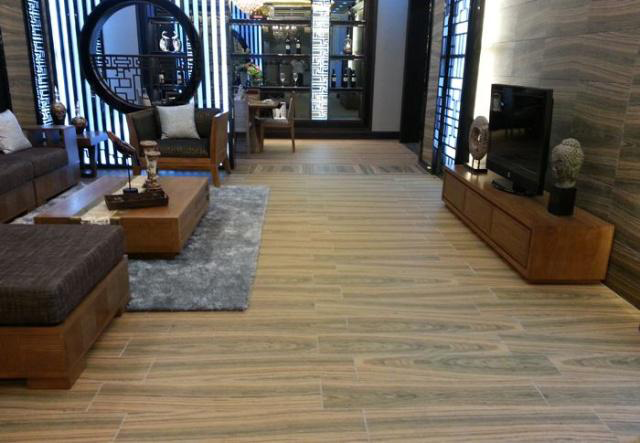不同顏色的木紋磚,它可以用在不同的地方,客廳的話可以選擇用深棕色的木紋磚,而臥室用棕色接近樹木天然顏色的就行了。