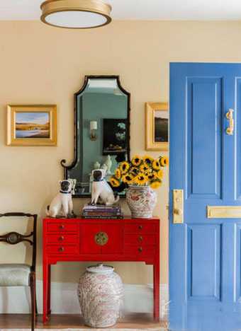 藍色紅色的色彩組合,盡顯空間的典雅與別致。木地板等大量木質材質的平鋪在向陽花的映襯下,增添了不少生機與活力,清新與自然浸透其間。