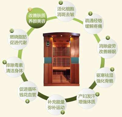 通過遠(yuǎn)紅外線的深層照射,可加快人體的血液循環(huán),刺激汗腺出汗,有效排出體內(nèi)重金屬和毒素,消除身體里有可能導(dǎo)致癌變的有害物質(zhì)。