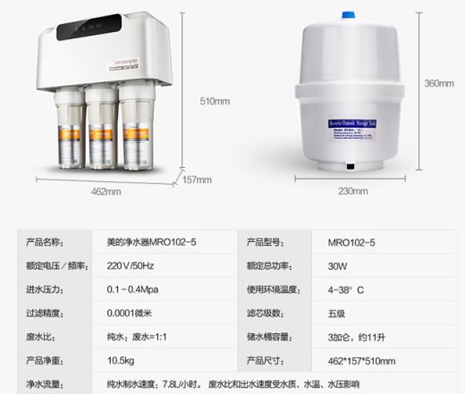 美的凈水器mro102-5產(chǎn)品參數(shù)