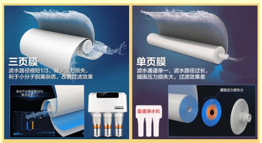 美的三頁卷膜技術(shù)是美的凈水機(jī)最新的創(chuàng)新技術(shù),通過多張RO膜降低水在膜葉中行走的路程,同時提升凈水水質(zhì),用戶不僅能喝到更健康的水,而且還降低了用水損耗,創(chuàng)造出1∶1的行業(yè)最低廢水標(biāo)準(zhǔn) ,符合既健康又節(jié)水的凈水需求。更重要的是,多膜協(xié)同凈水,把單一RO膜使用壽命延長至3年,用戶可長久享受健康飲水生活。