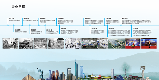 法蘭尼凈水器自2000年來到中國,成為了行業內的核心企業,在中國發展十七年。2002年,研發第一支適合中國水質的超濾膜材料,成為中國凈水企業標桿;2010年,成為世界五百強增長速度最快的企業,品牌價值高達426億美元;2013年成為了世界追捧、中國消費者最喜愛的凈水器十大品牌;2015年,與著名影星于榮光的合作讓法蘭尼的品牌形象跨上了一個新的臺階;在2016年、2017年,法蘭尼在技術上持續突破…… 十七年的專注和努力,正如法蘭尼最初的愿望一樣,只為“讓世界每個人都能飲用健康干凈水”。