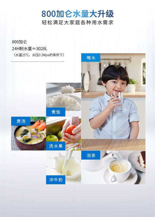 就流出水速而言,800G的無桶鮮活水,只需6秒鐘就可將一個200毫升的杯子裝滿,而淡水則無需等待即可過濾飲用。純水+凈水智能雙出口水龍頭的設計也很好,喝純凈水,用來凈化水,生活質量飽滿!