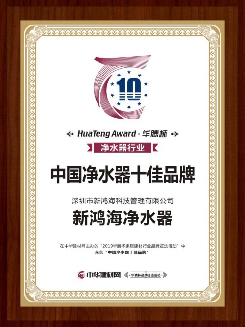 俗話說,“年輕不養(yǎng)生,老了養(yǎng)醫(yī)生”。如今,90后的年輕人開始保溫杯泡枸杞,多吃粗糧少吃肉,以保持身體健康。在我們的日常生活中,水是不可缺少的一部分,飲用水的安全越來越受到人們的關(guān)注。近日,由中華建材網(wǎng)主辦的“2019華騰杯家居建材行業(yè)品牌征選活動”正式結(jié)束,經(jīng)過激烈的投票和專家評審,新鴻海凈水脫穎而出,榮獲“2019中國凈水器十佳品牌”大獎。