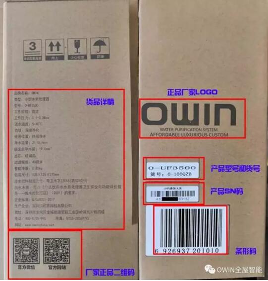 圖:OWIN凈水器具有正規的防偽標簽