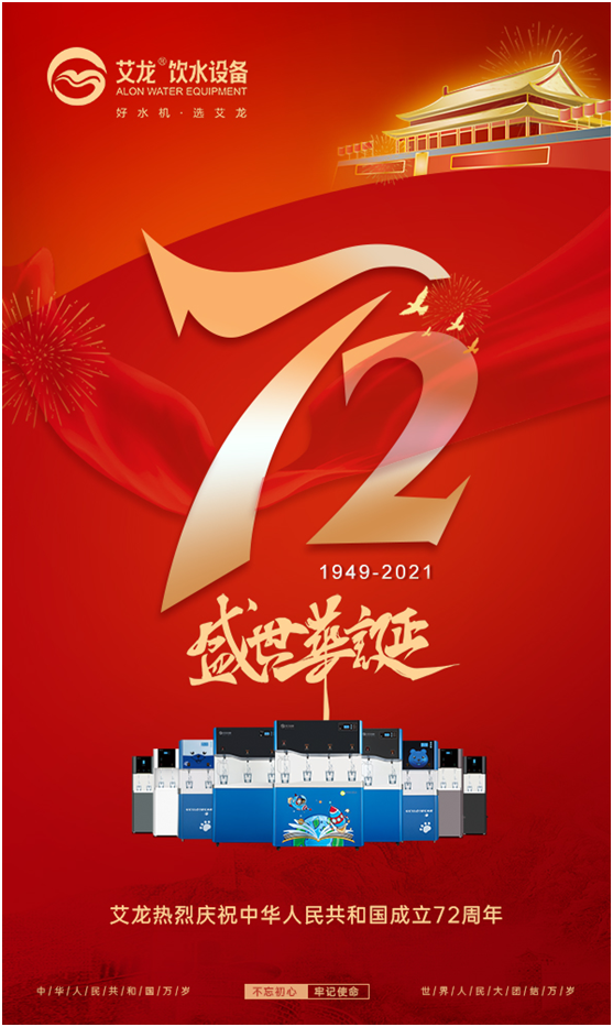 72年,光輝歲月彈指一揮間,72年,中華大地滄桑巨變。2021年我們迎來新中國成立72周年。回望壯闊72年,中國成為當今世界第二大經(jīng)濟體、中國特色社會主義進入新時代、全面建成小康社會……皆是中華崛起之見證。此時此刻,艾龍飲水設備祝愿祖國蒸蒸日上,再創(chuàng)新的輝煌!
