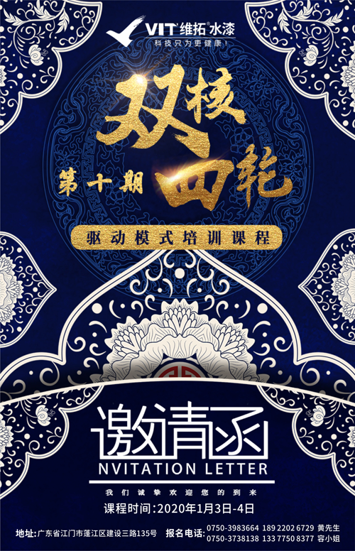 一日之計在于晨,一年之計在于春。2019年沒多久便要過去了,應對一個超大的涂料市場,2020年,不斷涌現的新品類、新模式、新政策等將點爆新的競爭,您你準備好了嗎?維拓水性漆讓您成竹在胸過新年,第十期“雙核四輪驅動營銷模式”方案班早已終止報名,別再猶豫,請沒多久聯系我們!