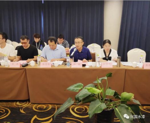 青島興國涂料有限公司總經理劉沛頤主持會議,山東省涂料行業協會秘書長林喆、青島市家具協會秘書長王守山出席并講話。