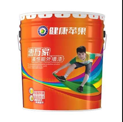健康蘋果——惠萬家高性能外墻漆,專為高檔建筑外墻裝修配制,具有良好的抗污、耐候和保色功能,同時施工性好、附著力強、抗堿、防霉等特點。