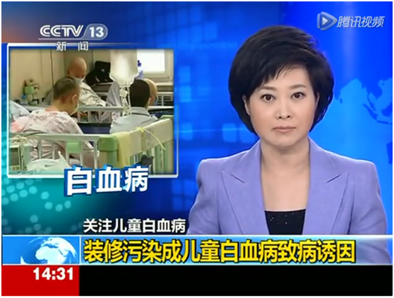 【CCTV-13 新聞】關(guān)注兒童白血病-裝修污染成兒童白血病致病誘因