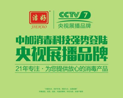 這次,中加首次登陸央視7頻道,詮釋中加消毒科技品牌,將大大提升中加得品牌知名度和影響力。只有品牌強大,才值得信賴;技術(shù)過硬,品質(zhì)才更加完美。中加消毒科技,做放心產(chǎn)品,為我們的公共環(huán)境衛(wèi)生保駕護(hù)航。