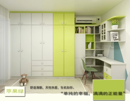 “蘋果綠”能提高效率,消除疲勞,使人活潑,喜歡綠色的孩子熱愛大自然、喜歡探險、自控能力強,內心滿滿的正能量,綠色更適合性格偏內向的孩子。