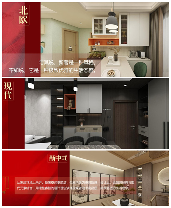 “新奢”是設計中所要表達的生活理念和品質態度,三好新奢定制具體到現代、美式、歐式、中式、輕奢等每一種裝修風格,都能找到對應的設計及表達方法。根據居者的需求與品味定制打造一隅獨屬于自己的時空。