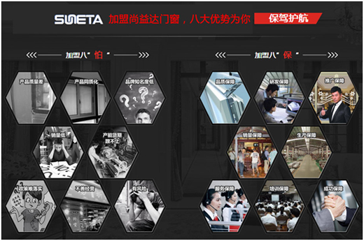 此外,尚益達還會全力扶持、一路護航合作伙伴發展“養店之路”:提供完善的培訓資料,并且不定期開設老板、店長、導購等培訓班;派出終端幫扶團隊相助策劃單店營銷、聯盟活動、媒體推廣等,有標準的VI廣告設計模板用作廣告推廣,并能制作統一的活動禮品來支持終端促銷等活動;建立明確的區域保護制度、嚴格執行全國統一的出廠價格和零售指導價格、保障合作伙伴的合法權益;承諾24小時內完成訂單的設計方案,讓門店客戶減少等待時間、提高滿意度。