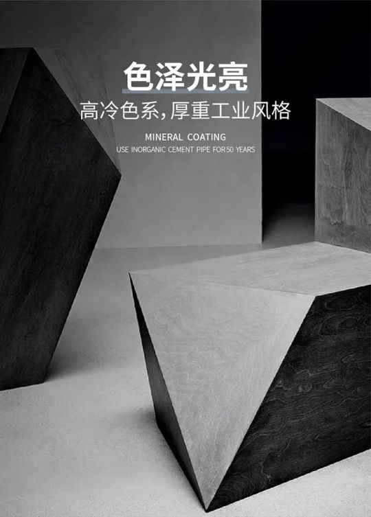萬磊清水混泥土,飾面光滑細膩猶如蠟面一種色澤光亮和高冷的色系并且飾面光滑細膩的優質建材,透露出一股厚重工業風與都市現代感。