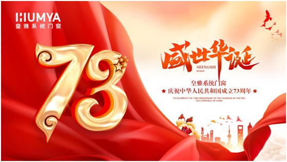 值此祖國73周年華誕之際,皇雅門窗系統愿祖國山河無恙,繁榮昌盛!