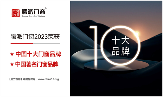 作為門窗行業的領軍品牌,騰派門窗憑借不斷躍升的品牌影響力和高速增長的產品力,榮膺“中國十大門窗品牌”稱號。