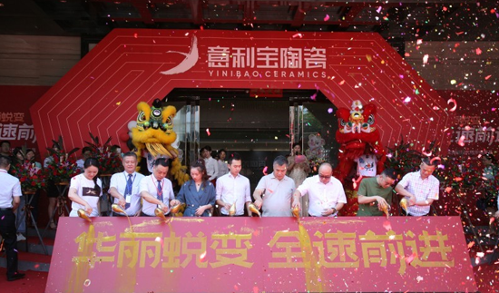 與此同時,在龍獅伴舞和一眾現場人員的見證下,意利寶陶瓷新展廳正式向外界揭開了其全新的面目。