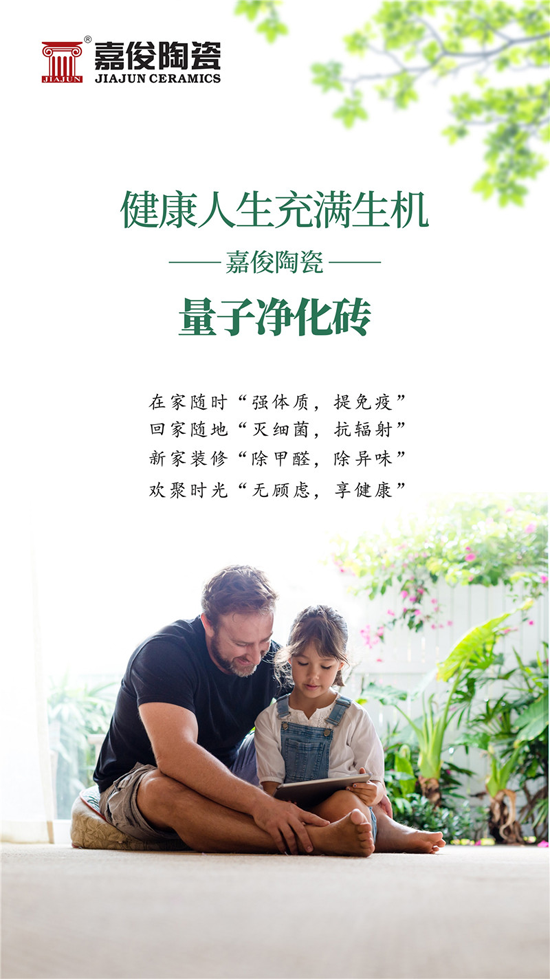 歷經720天的潛心專研,嘉俊陶瓷成功研發出行業科技新品——量子凈化磚。量子凈化磚采用先進的量子技術,在磚的釉面層導入具有專利配方的特殊量子物質,可長期有效地釋放負離子,讓每位追求高品質生活的人,都能擁有如森林瀑布般清新自然又舒爽的居家環境!
