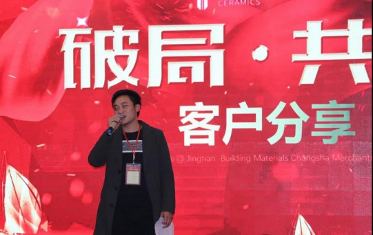 第二位客戶分享代表是來自湖南長沙縣的周柟先生。周總在分享中表示,非常認同卡帝朗陶瓷總經銷的服務以及產品的品質,也感謝景天建材給予的機會,在卡帝朗陶瓷品牌全面升級中,憑借廠家給予的裝修補助政策,為自己創造了一個很好的分享紅利的機會。