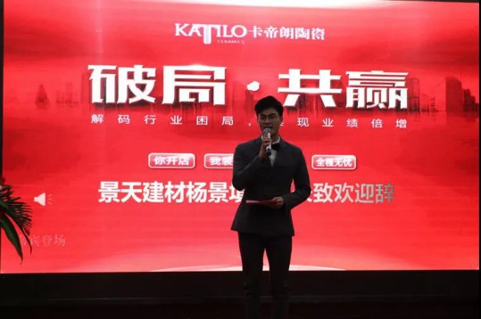 接著,卡帝朗陶瓷湖南營銷中心“景天建材”董事長楊景填先生致歡迎詞。