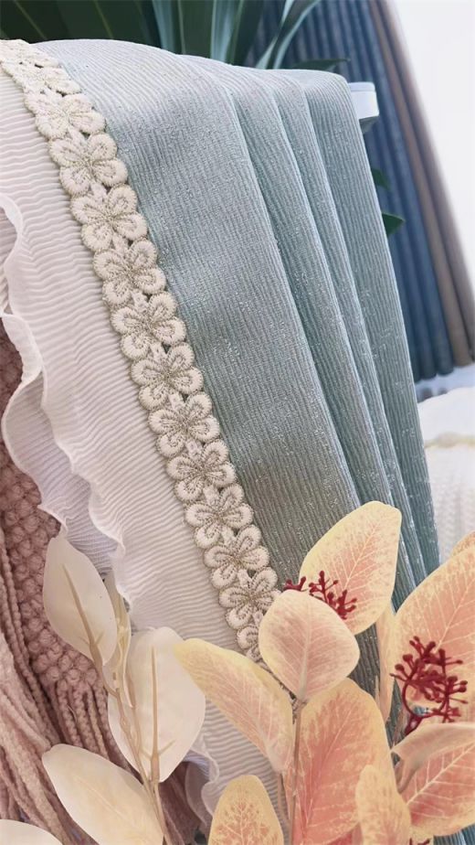 卡斯特·卡薩奢意新境新款窗簾以青藍色為主,奢華不浮躁。懸掛窗邊,為室內引入明亮的光線,帶給人們內心的平靜和放松,營造了輕奢新意境,拉長了歲月的悠然時光。