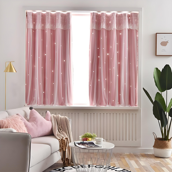 將窗簾桿貼近天花板,簾身垂至離地2cm處,視覺上拉高空間,相當于為房間穿一條“高腰闊腿褲”。此方法尤其適合落地窗或窄窗,搭配夢幻簾等透光材質,可營造通透感。
