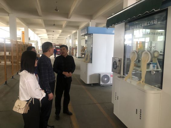 孫德祥局長一行首先深入車間,參觀考察了公司近期研發生產的新產品,重點考察了揚子可移動式核酸檢測工作站,具體了解了產品的研發情況和功能配置、技術創新和產能情況。對我司在疫情防控和國內外經濟形勢復雜嚴峻等多重困難和挑戰下,堅持科技創新、快速反應、持續發展的經營思路給予了充分肯定,勉勵我們要更加積極配合防控疫情工作,用優秀高質的產品服務于社會。