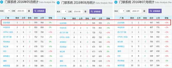 圖二:達實信息在5—7月份中一直居于門禁系統排名的首位
