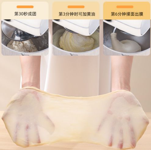 根據(jù)君焙實(shí)驗(yàn)室高達(dá)3000次的實(shí)驗(yàn)數(shù)據(jù)顯示,君焙廚師機(jī)的揉面出膜時(shí)間在10-13分鐘,區(qū)別于市面上其他廚師機(jī)產(chǎn)品的優(yōu)勢在于,即使如此快速的出膜,君焙廚師機(jī)仍不需要做任何的控溫處理,也能精準(zhǔn)控制面團(tuán)溫度在合適的范圍內(nèi)。當(dāng)然,目前為了應(yīng)對各種苛刻面溫要求,我們也給大家提供冰袋輔助降溫,如果經(jīng)常制作高面溫要求作品的粉絲可以自由加gou。