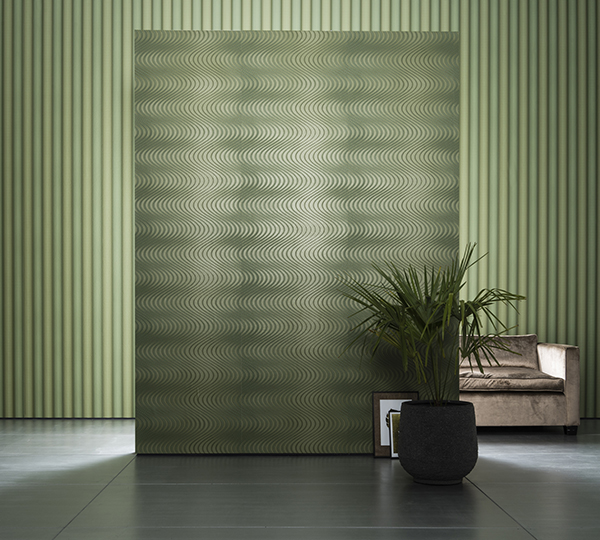 綠洲的主題,讓我們感覺靜謐、清新,適合在餐廳、客廳、書房等空間使用。這個主題中,德國瑪堡壁紙亮相的是由世界著名設計大師路易吉·克拉尼操刀設計的《傳奇》系列壁紙。