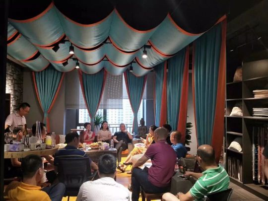 在座談會中,與會人員各抒已見,對新展廳的產品連連稱贊,軟裝的裝飾點綴讓空間更顯溫馨設計感。大家紛紛向劉廷貴總經理請教壁紙這方面的相關問題,交流行業動態及提出各自經營發展中遇到的問題,會議氛圍輕松愉快。