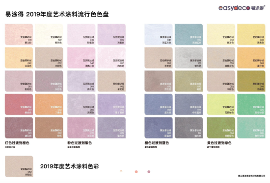 不僅消費(fèi)者可以選擇關(guān)注這樣的肌理,而且在這樣的肌理底下顏色也是非常豐富,可謂是顏色與肌理相得益彰,我們有一句話叫做“只談?lì)伾蛔阋哉勵(lì)伾徽勵(lì)伾珓t不足以談其他”,顏色和材質(zhì)、肌理和光影一樣,共同構(gòu)成了生活中的環(huán)境,也讓人們在這個(gè)環(huán)境中得到美的享受,所以易涂得推出了趨勢色、趨勢肌理,這是我們對市場的一個(gè)判斷,對市場的一個(gè)預(yù)期,也希望與消費(fèi)者一起共同打造屬于我們自己美好的生活。