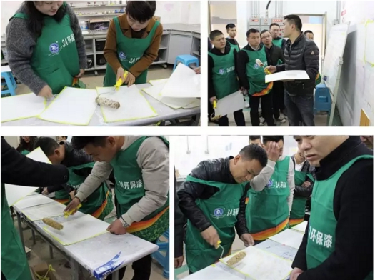 對于涂料行業來說,了解內外墻漆產品相關的基礎知識是非常關鍵的。本次培訓特別安排了內外墻產品知識和工藝流程、水包砂產品上墻實操體驗、藝術涂料施工工藝、功能特點以及產品造價思路的培訓,讓每一位經銷商家人對3A藝術涂料的產品優勢有了全面且深入的學習,從而為每一位客戶提供更加專業的服務。