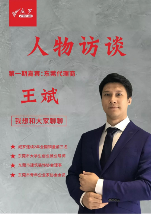 王斌,東莞威羅代理商,2017年和2018年連續(xù)兩年全國銷售額前三名,東莞大學學生企業(yè)家和就業(yè)導師,東莞建筑裝飾協會理事,東莞青年企業(yè)家協會會員,致力于意大利原裝進口藝術涂料的推廣和運營,威羅是王總的第一個創(chuàng)業(yè)項目。